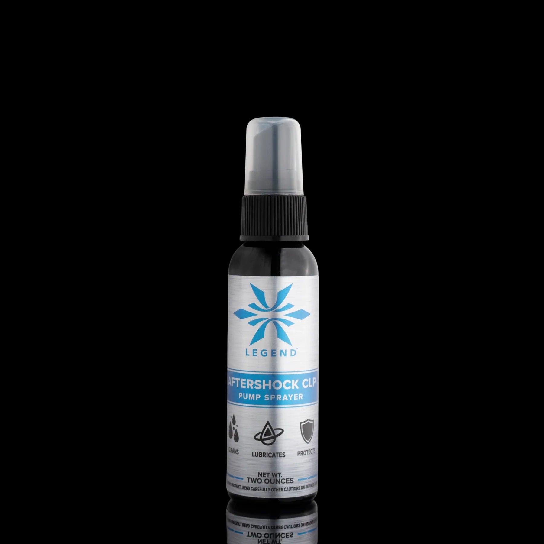 AFTERSHOCK CLP is a high quality one-step cleaner, lubricant, and rust preventative for all aspects of your firearms. It is effective in removing oils, dirt, copper, lead, and other contaminants. It provides a thin, non-greasy coating that prevents rust and lubricates all moving parts of fine firearms and sporting equipment. AFTERSHOCK CLP also nourishes, preserves, and protects wood and leather. It will not harm polymers or other synthetic surfaces. AFTERSHOCK CLP is great for wood stocks and grips, as well as leather holsters, scabbards, and slings. Not recommended for painted surfaces.